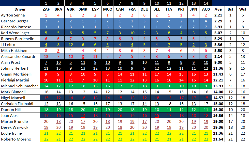 The 1993 FF1M Season will feature 14 Rounds from the 1993 Formula One World Championship.